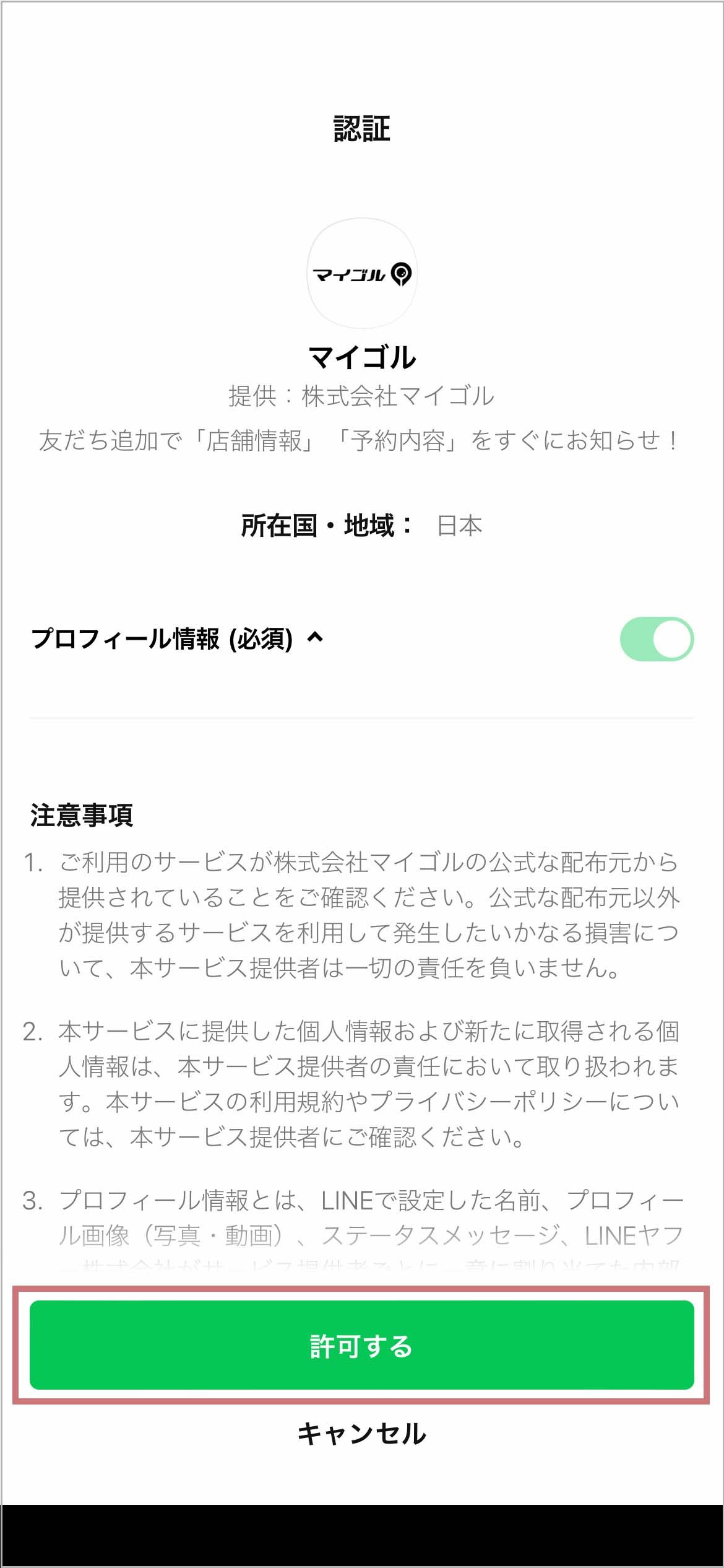 LINEでログインの場合は認証行ってくださいLINEアプリが自動的に立ち上がります
