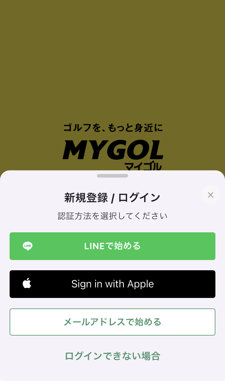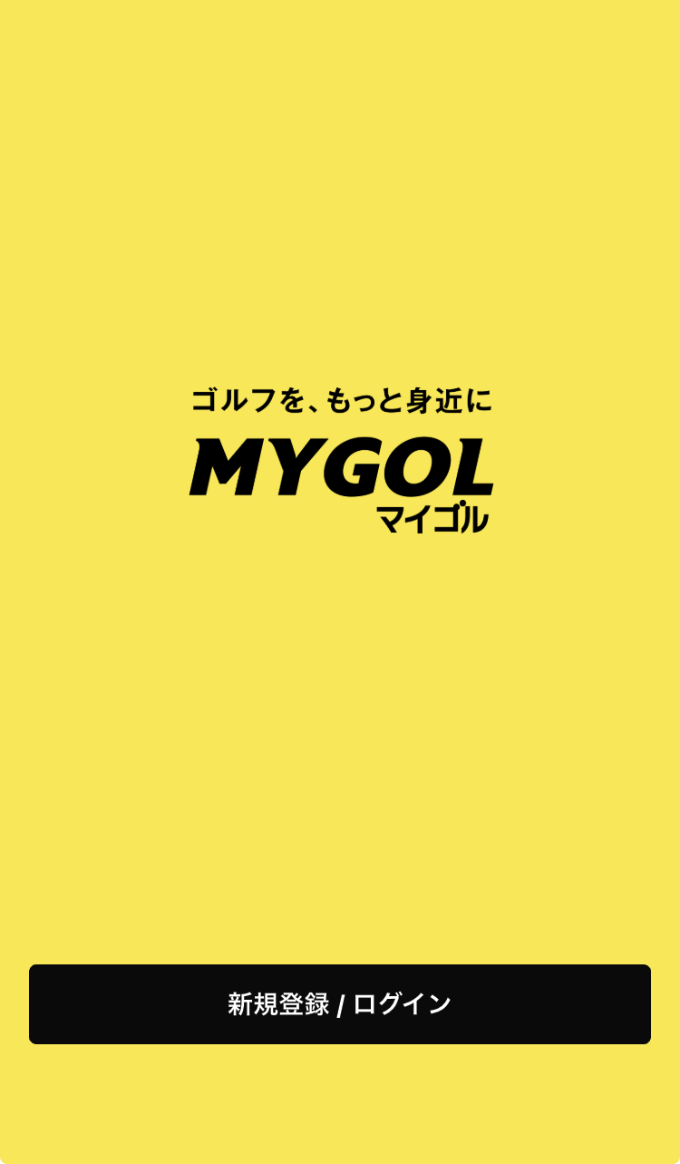 マイゴルアプリを開き「新規登録/ログイン」をタップ