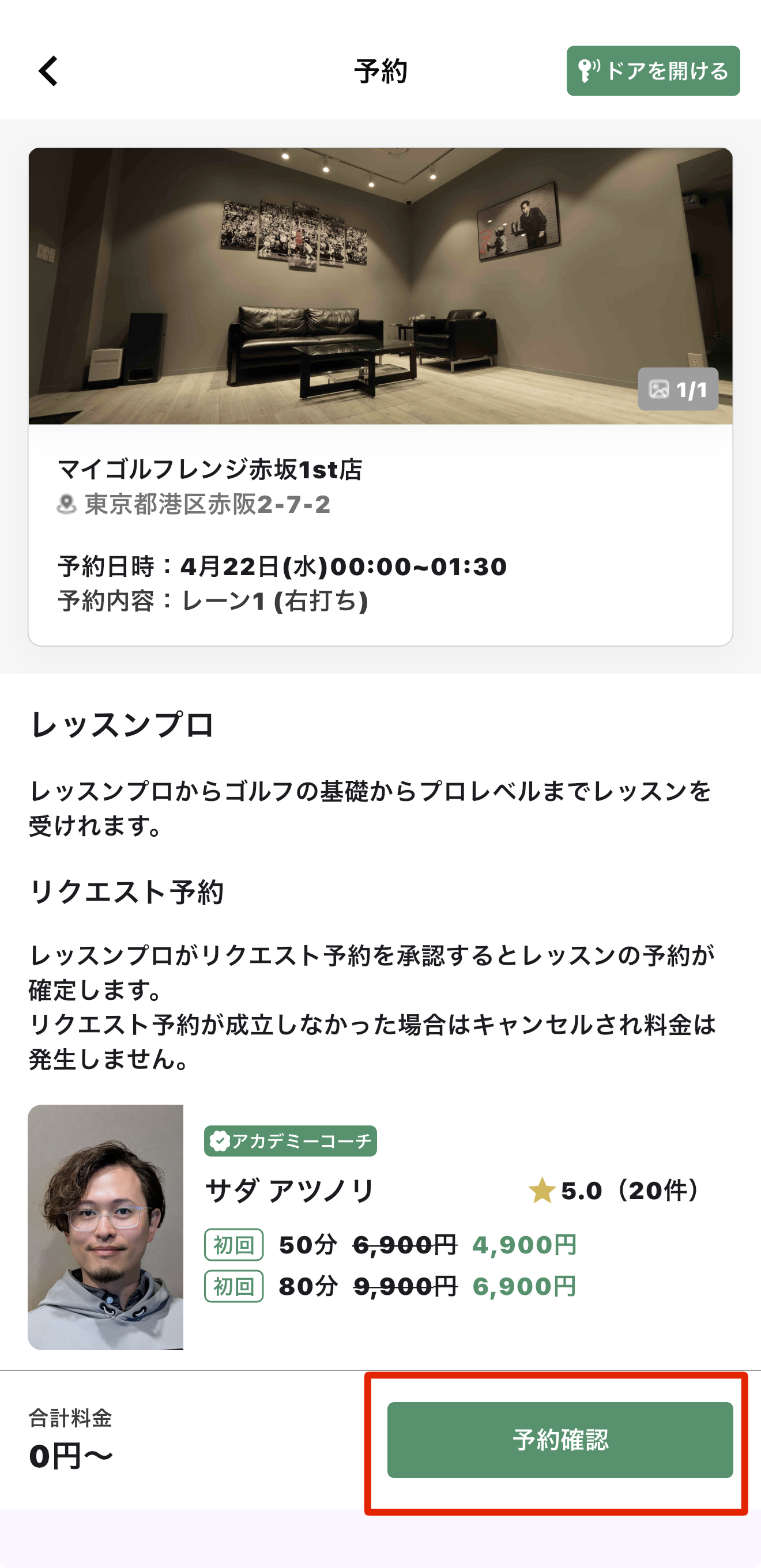 予約画面にマイゴルからおすすめのレッスンプロを紹介しております!