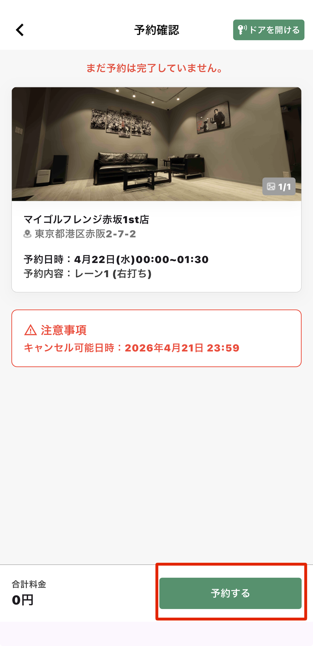 右下の「予約する」をタップ