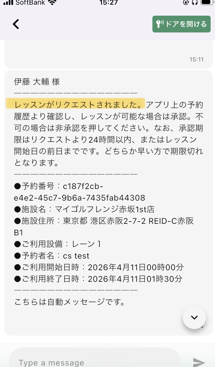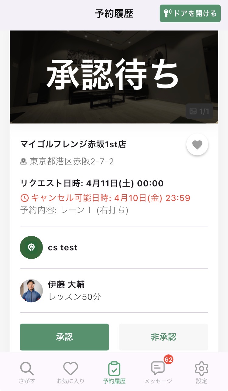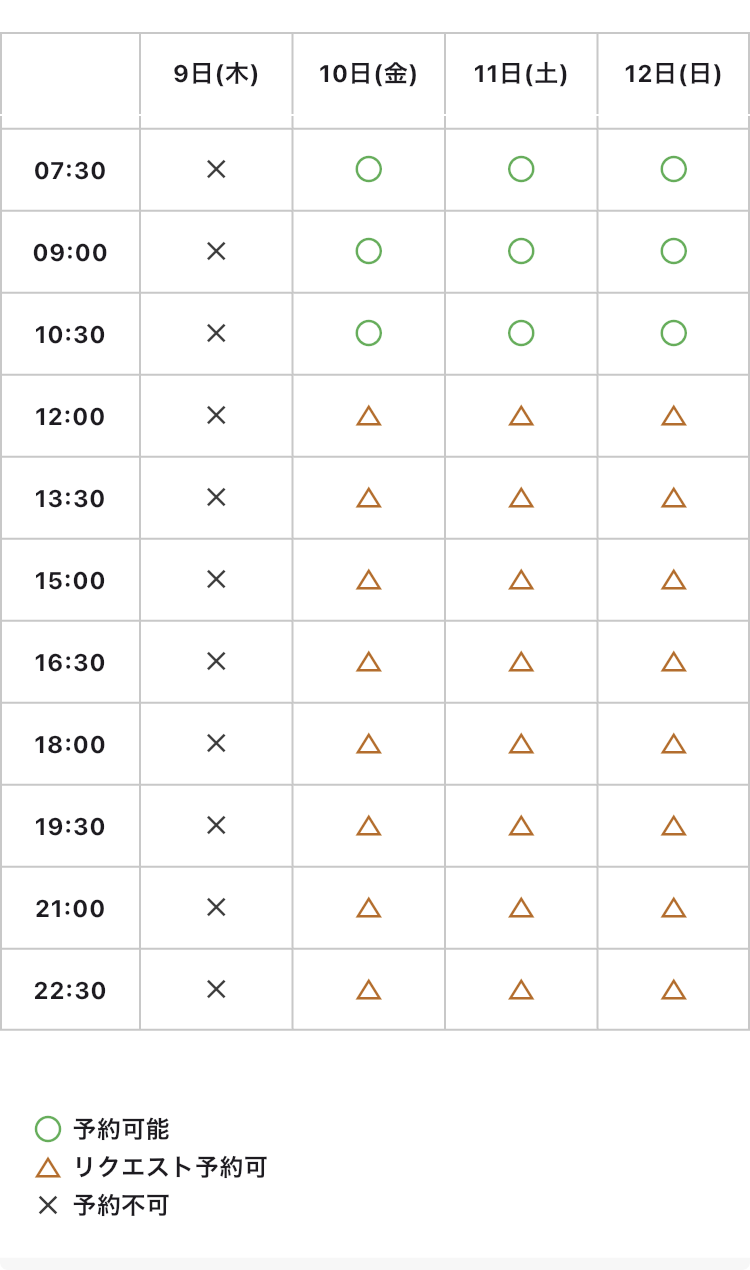 △リクエスト予約可:会員が希望日時を選択してリクエストしてくる→レッスンプロが承認することで予約完了となる