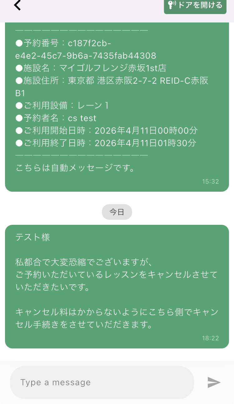 レッスンプロ都合で日時変更やキャンセルが発生する場合は会員にキャンセル料が発生しないようにレッスンプロ側でキャンセル対応を実施してください
